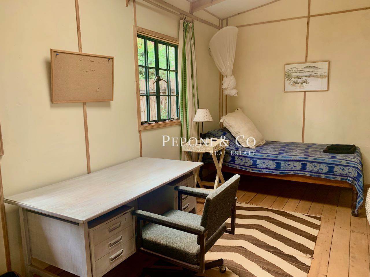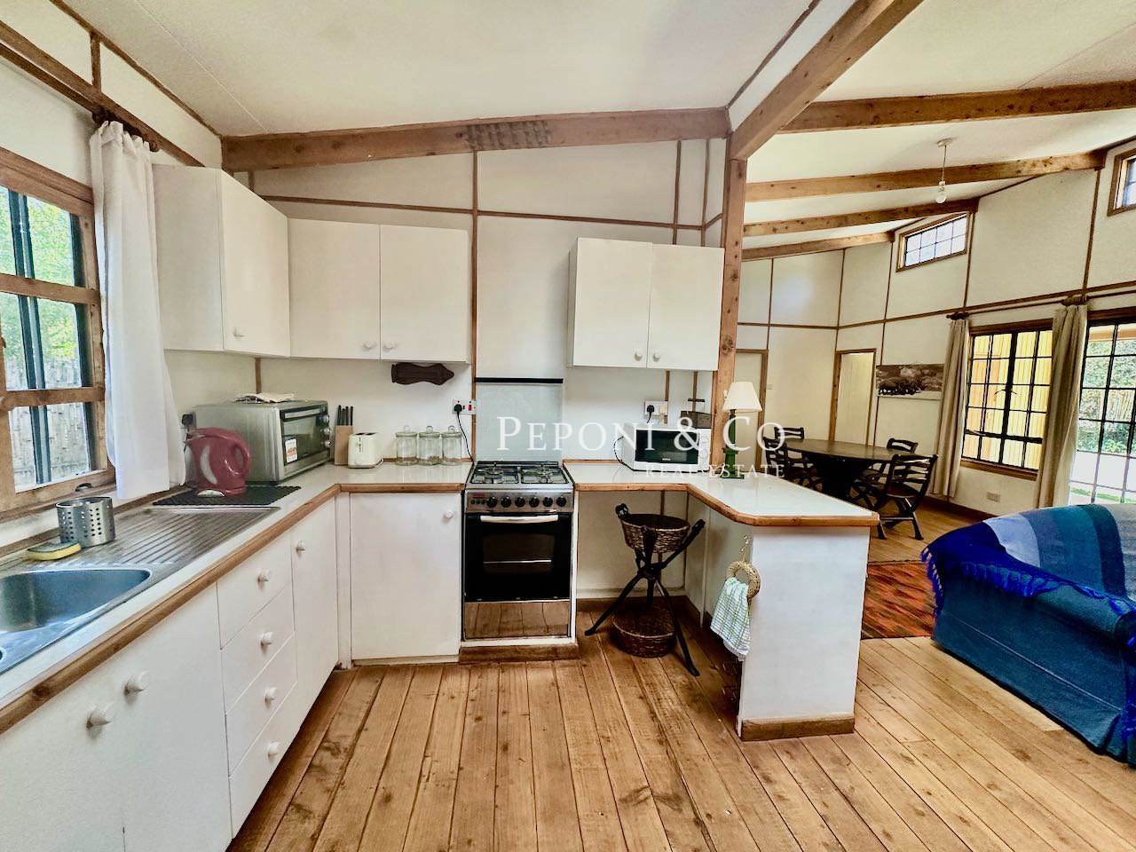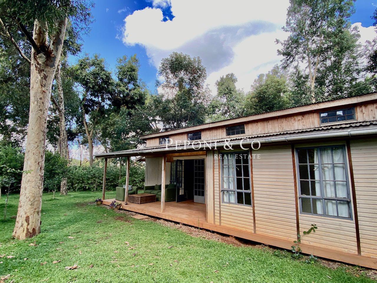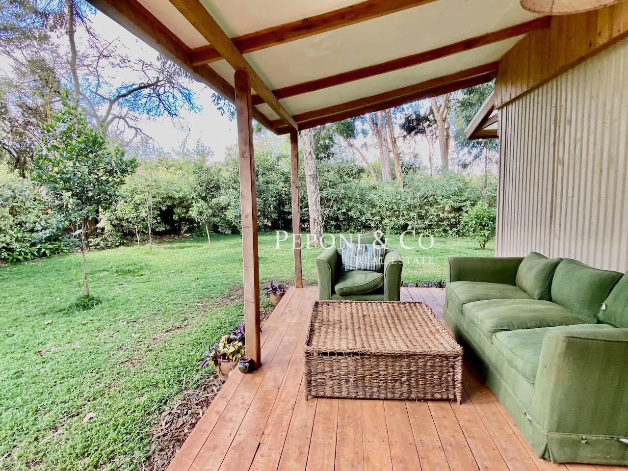 Beautiful naturally lit fully furnished 2.5 bedroom cottage on a shared 5 acre plot. The cottage has its own private garden as well. Deliciously quiet and peaceful location in the Ngong View Estate so relatively easy access to the Karen Roundabout, Lavington and the Southern Bypass.