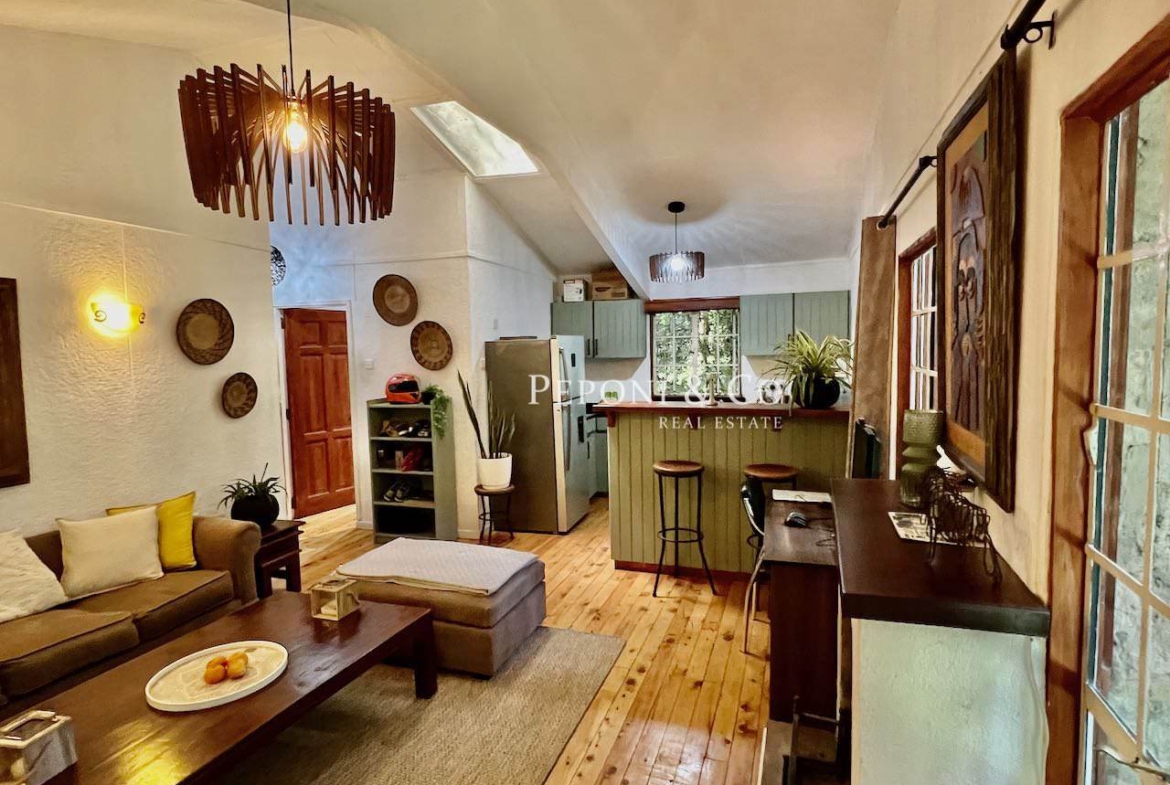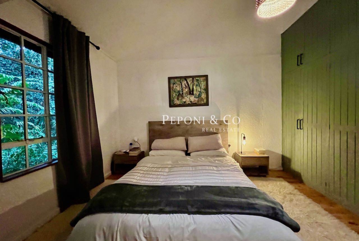 Nestled in an indigenous forest is this elegant fully furnished 2 bedroom / 1 bathroom cottage set in an oasis of nature bordering a beautiful lake. The property is located in the Miotoni area of Karen providing optimal commutes for those heading to Westlands, the Industrial Area and the Airport. The banks of the lake are for all of the tenants to enjoy and share with their friends. The cottage comes available in early April 2026.